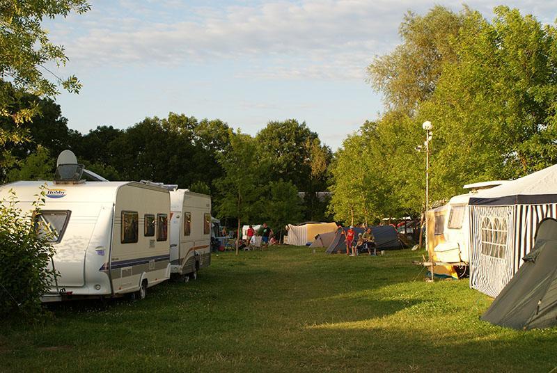 – Różnorodne miejsca kempingowe z dostępem do prądu, otoczone zielenią,