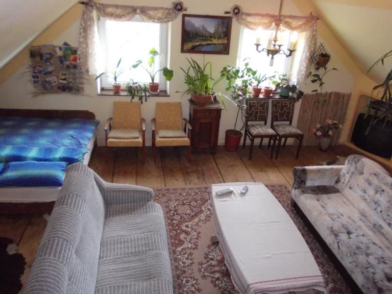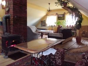 Łazienka dla obu pokoi znajduje się na korytarzu. Na parterze czeka na Ciebie przestronny salon z kominkiem, barkiem i pianinem. Dla naszych gości serwujemy pyszne, zdrowe potrawy, takie jak chleb prosto z pieca, jagnięcina z własnej hodowli, wędzone kiełbasy i sery owcze oraz serki kozie.