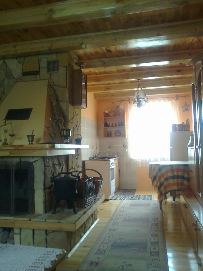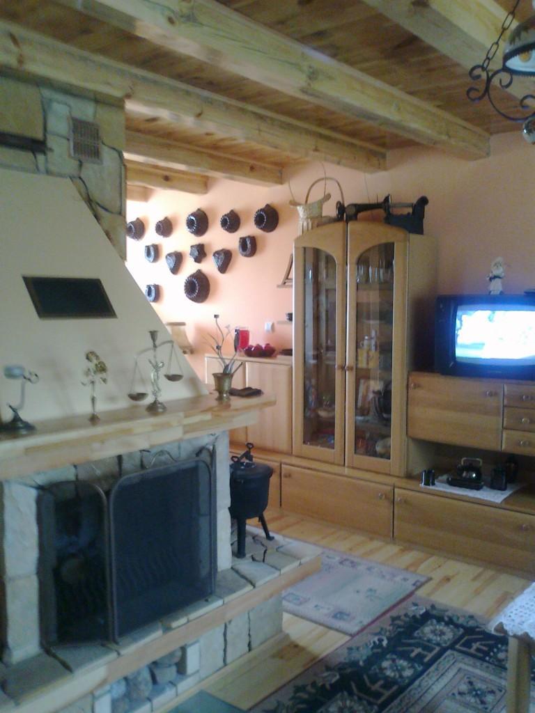 Oferujemy Państwu komfortowy, parterowy dom letniskowy, który pomieści do pięciu osób. W domu znajduje się przestronny salon z kominkiem, który tworzy przytulną atmosferę, oraz w pełni wyposażony aneks kuchenny. Do dyspozycji gości jest także sypialnia i łazienka. Z salonu można wyjść bezpośrednio na taras i do ogrodu, gdzie czeka na Państwa drewniany stół, idealny do biesiadowania na świeżym powietrzu, oraz huśtawka.