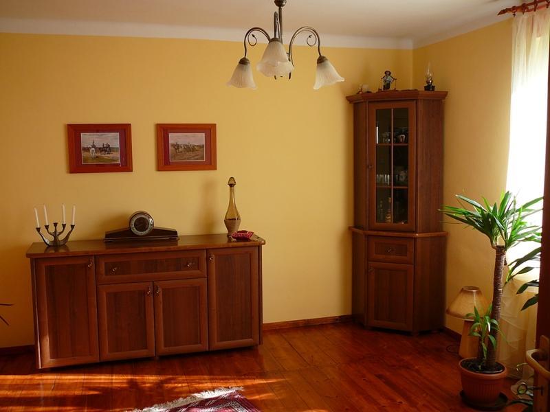 – Salon z kominkiem połączony z kuchnią i jadalnią,