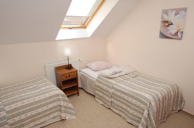 – 4 samodzielne apartamenty, każdy z niezależnym wejściem, pokojem dziennym z kominkiem i telewizorem, 2 sypialniami oraz łazienką,