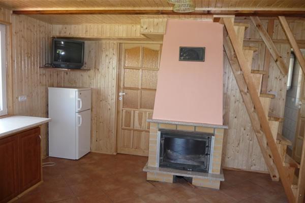 – Parter: pokój 2-osobowy (2×90), łazienka (prysznic, umywalka, WC), kuchnia z jadalnią (aneks kuchenny, lodówka, TV, kominek)