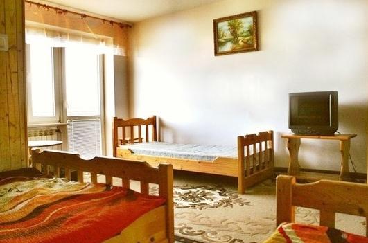 – Parter: pokój 3-osobowy (3×90), łazienka (prysznic, umywalka, WC), kuchnia z jadalnią (aneks kuchenny, lodówka, TV)