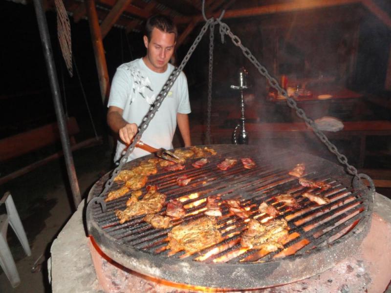 Dodatkowo oferujemy usługi cateringowe, w tym pieczonego prosiaka, barana, dziczyznę, swojskie szynki i kiełbasy przygotowane w kamiennym piecu. Prowadzimy także hotel dla koni.