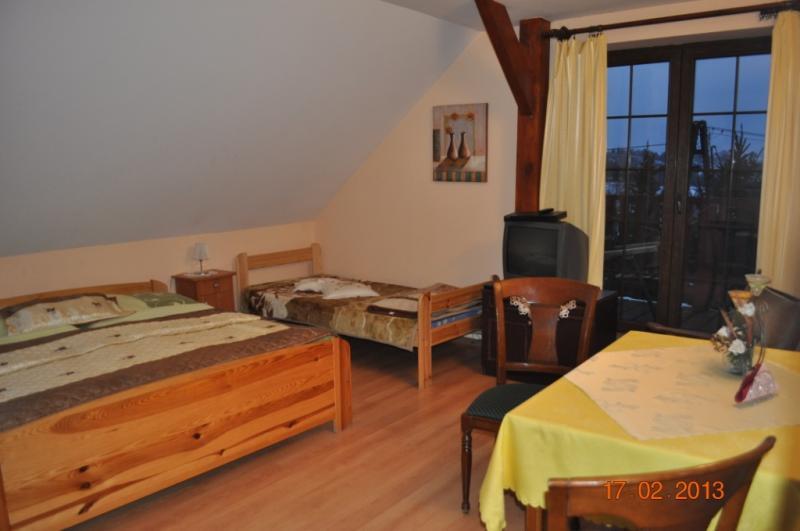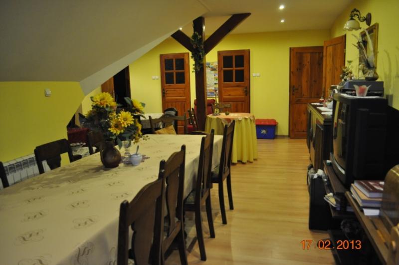 Na naszych gości czekają przytulne pokoje oraz domowe jedzenie. Do dyspozycji jest duży hol oraz w pełni wyposażony aneks kuchenny. Pokoje 2-5 osobowe z łazienkami wyposażone są w komfortowe łóżka, TV, radio, stoliki nocne oraz szafy. Każdy pokój posiada balkon z przepięknym widokiem na okolicę.