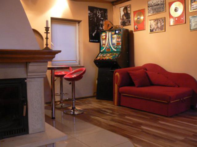 Zapraszamy do wyjątkowego miejsca, gdzie komfort i relaks idą w parze z naturą. Oferujemy dwa rodzaje zakwaterowania na malowniczej posesji. Pierwszy to drewniany, wolnostojący domek o powierzchni 70 m², urządzony w stylu klubowym. Znajdziesz tu wszystko, czego potrzebujesz: Wi-Fi, telewizję satelitarną, sprzęt audio, a także aneks kuchenny z pełnym wyposażeniem. W salonie czeka na Ciebie przytulny kominek, a część sypialna pomieści 4-5 osób. Domek posiada również łazienkę z kabiną prysznicową i hydromasażem. Dodatkowo, istnieje możliwość dostawki.
