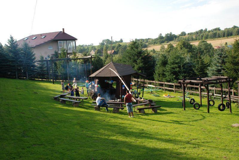 – Plac zabaw z miejscem do grillowania, ścianką wspinaczkową i zjeżdżalnią.