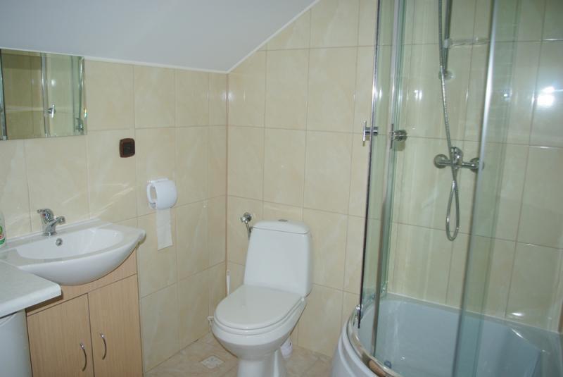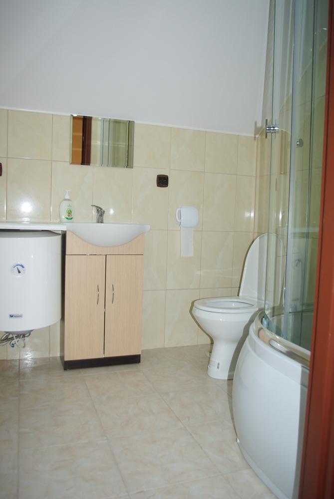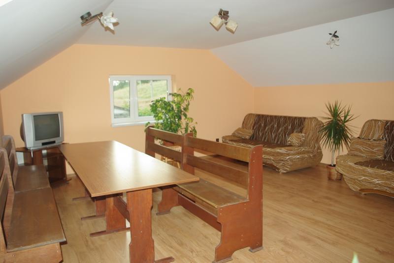 – Pierwszy domek: trzy pokoje, w tym salon na imprezy do 20 osób, w pełni wyposażona kuchnia (naczynia, zastawa, kuchnia gazowa, lodówka, bieżąca woda), łazienka z prysznicem, WC i umywalką.