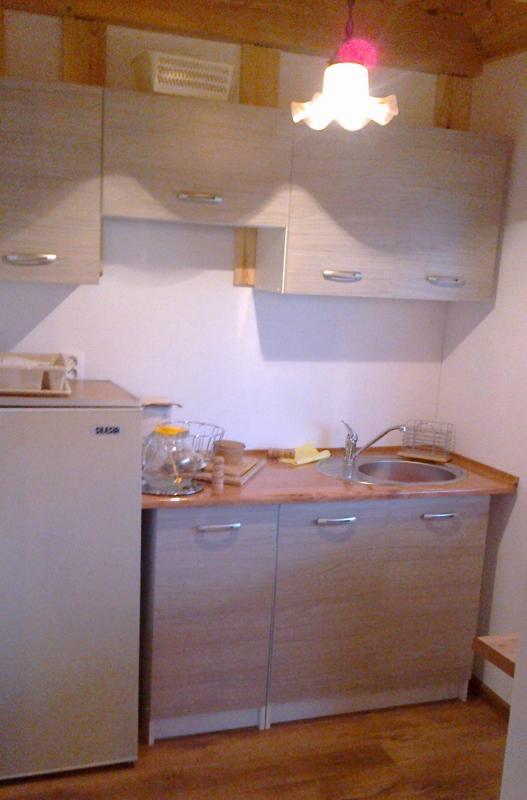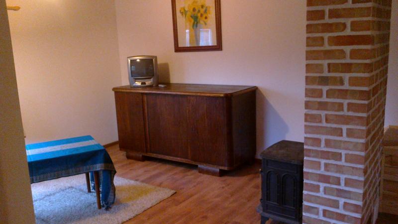 – Wyposażenie: rozkładaną sofę, dwa łóżka dwuosobowe, stół z krzesłami, w pełni wyposażony aneks kuchenny z lodówką, kominek i telewizor,
