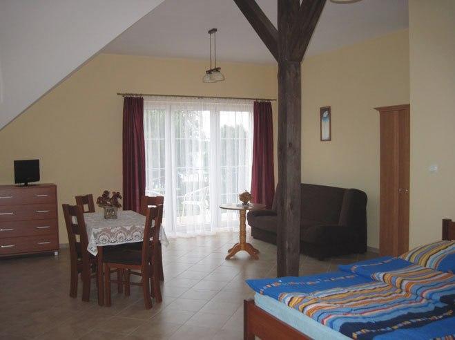 Nasza oferta noclegowa obejmuje wygodne pokoje dwuosobowe, w tym dwa z balkonami, z których można podziwiać piękne widoki na jezioro. Każdy pokój wyposażony jest w łazienkę, telewizor, czajnik elektryczny oraz podstawowe naczynia. Dla większego komfortu wprowadziliśmy dwa nowe apartamenty, składające się z dwóch pokoi, łazienki i aneksu kuchennego.