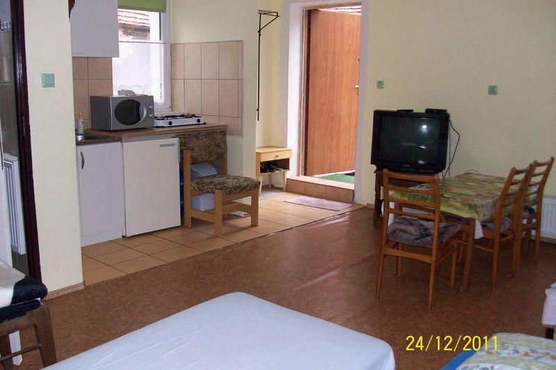 Zapraszamy do naszego przytulnego obiektu, który oferuje komfortowe pokoje 2-, 3- i 4-osobowe z prywatnymi łazienkami oraz aneksami kuchennymi. Nasze kuchnie są w pełni wyposażone, aby zapewnić Państwu wygodę podczas pobytu. Znajdziecie w nich lodówkę, mikrofalówkę, czajnik bezprzewodowy oraz kuchenkę gazową. W każdym pokoju znajduje się również telewizor, co pozwoli na relaks po dniu pełnym wrażeń.