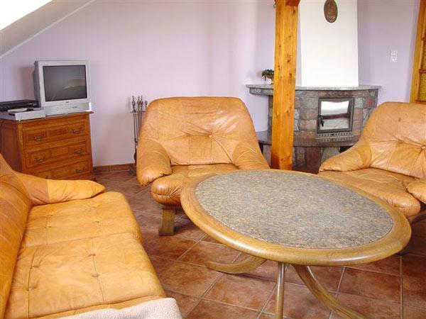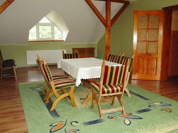 – Piętro: 6 jasnych i przytulnych pokoi 2-osobowych z własnymi łazienkami i WC, komfortowy pokój wypoczynkowy z TV i kominkiem