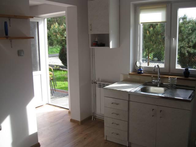 Przed domkiem czeka na Was taras z parasolem ogrodowym, idealny do relaksu i grillowania. W razie niepogody możecie schronić się w altance. Zapewniamy również bezpieczne miejsce parkingowe. Domek jest w całości do dyspozycji gości, którzy mogą zamówić wyżywienie oraz przyjechać ze swoimi zwierzętami. Rodziny z dziećmi są mile widziane.