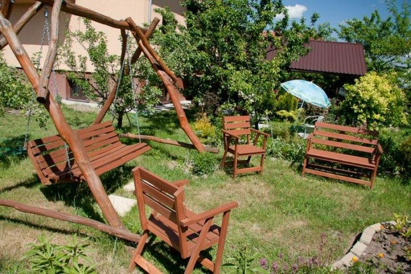 – Ogrodzony plac z dwoma drewnianymi huśtawkami,
