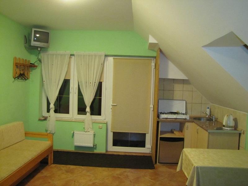 Do dyspozycji naszych gości oddajemy również aneks kuchenny wyposażony w niezbędne sprzęty, takie jak: