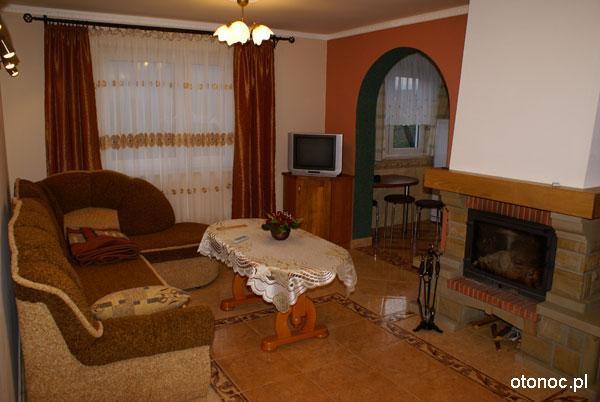 – Salon z kominkiem i telewizorem