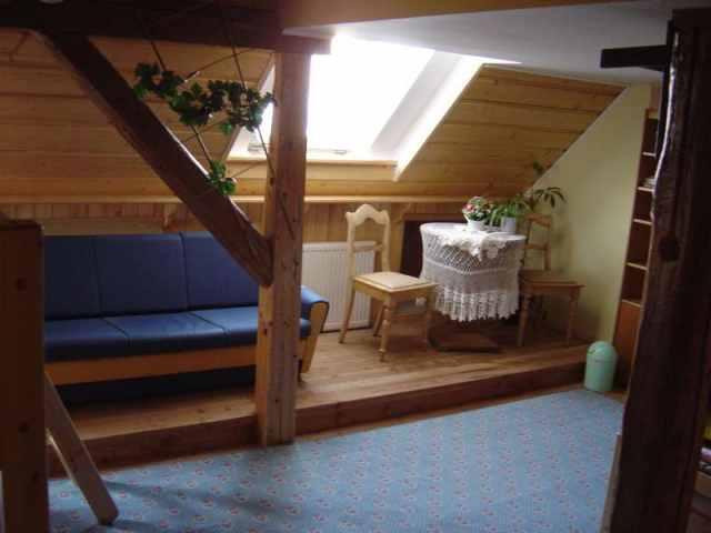 Oferujemy komfortowy wynajem pokoi, mogących pomieścić łącznie 10 osób. Do dyspozycji gości jest także przytulna sala z telewizorem i kominkiem, idealna na wieczorny relaks.