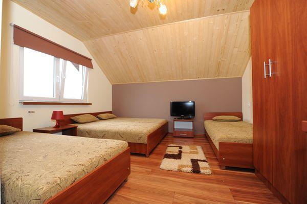 Oferujemy 40 miejsc noclegowych w pokojach 2-, 3- i 4-osobowych oraz piętro rodzinne dla większych rodzin. Każdy pokój wyposażony jest w łazienkę i telewizor. Do dyspozycji gości jest obszerna jadalnia i aneks kuchenny. Nasz zajazd jest przystosowany do przyjmowania kolonii i wycieczek szkolnych, a na terenie całego obiektu dostępny jest bezprzewodowy internet.