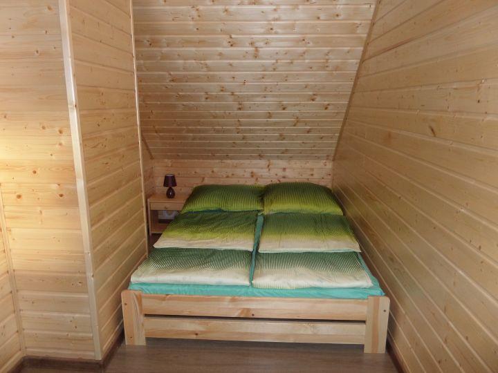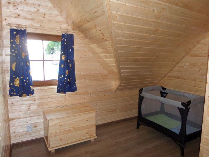 – Dwie sypialnie na piętrze: jedna 2-osobowa z łóżkiem podwójnym i łóżeczkiem turystycznym oraz druga 3-osobowa z łóżkiem podwójnym i łóżkiem pojedynczym.