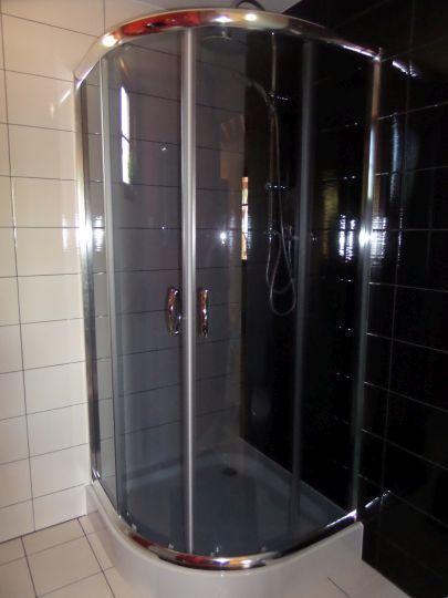 – Komfortową łazienkę z kabiną prysznicową, umywalką, WC oraz półką wiszącą.