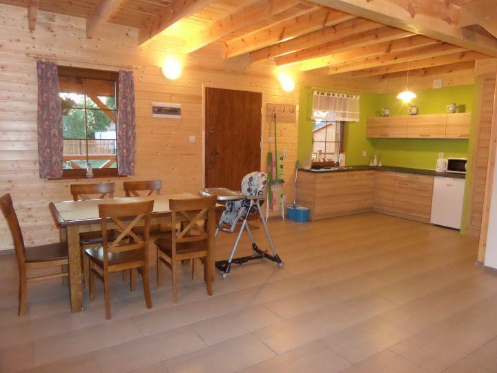 – Noclegi w nowych, drewnianych domkach dla 7 osób, w pełni wyposażonych.
