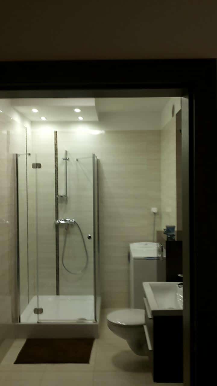 – Łazienkę z prysznicem i pralką,
