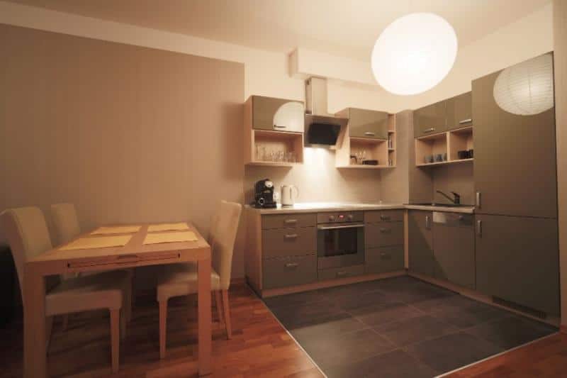 – Aneks kuchenny z lodówką, zmywarką, piekarnikiem i ekspresem do kawy.