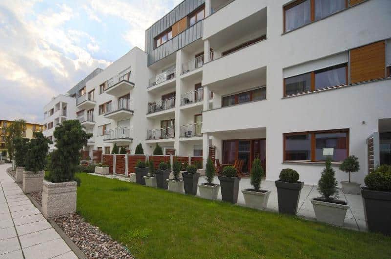 Apartament znajduje się na osiedlu Platan, które jest kompleksem budynków mieszkalnych i usługowych w sercu miasta, zaledwie 800 metrów od plaży. Bliskość stacji kolejki UBB umożliwia łatwy dojazd do pobliskich kurortów, takich jak Albeck, Heringsdorf i Bansin.