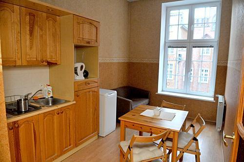 Apartament o powierzchni 32 m² mieści się na 3 piętrze kamienicy i jest przeznaczony dla 2-3 osób. Składa się z sypialni z widokiem na spokojne podwórko, łazienki z toaletą oraz kuchni z jadalnią, z której rozciąga się widok na Trakt Królewski. Goście mają do dyspozycji: