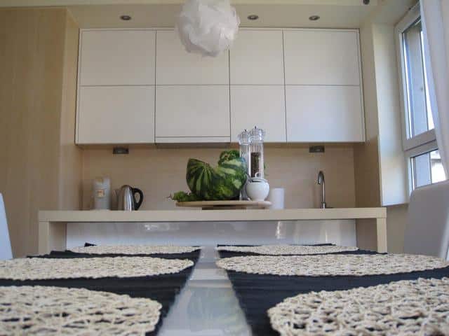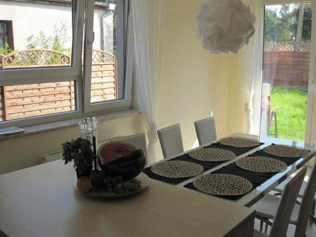 – **Nowoczesny aneks kuchenny**: w pełni wyposażony w wysokiej jakości sprzęty AGD oraz zastawę stołową i kuchenną.