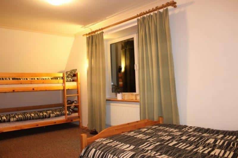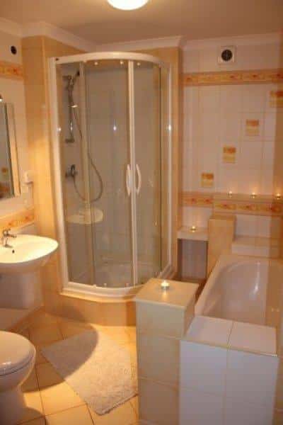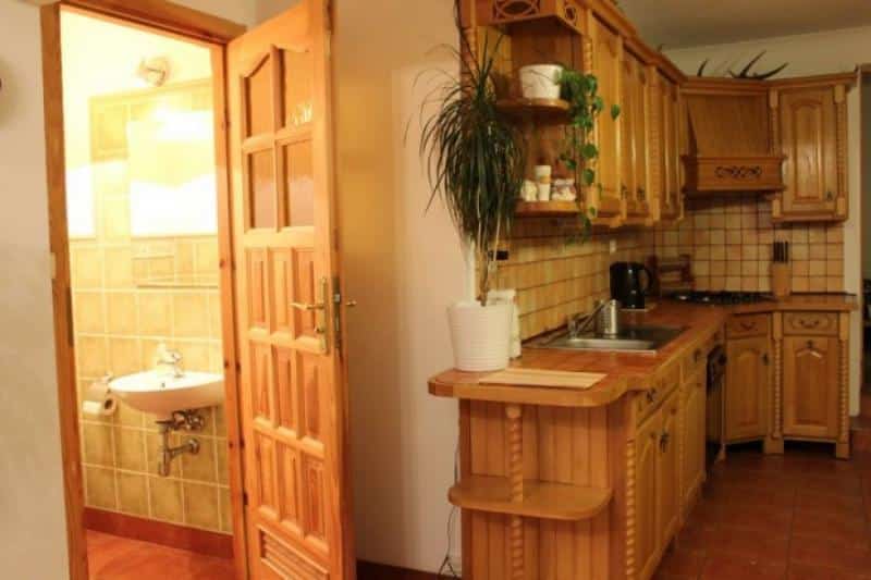 – Dużą sypialnię z łożem małżeńskim i łóżkiem piętrowym oraz łazienkę z wanną, prysznicem, wc, umywalką i pralką.