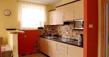 – Wyposażenie AGD: zmywarka, płyta dwupalnikowa, lodówka, kuchenka mikrofalowa