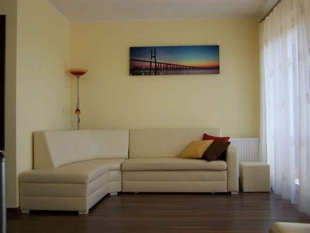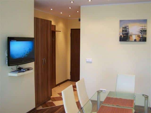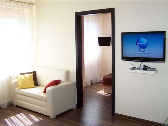 Apartament o powierzchni 42 m² składa się z dwóch pokoi, balkonu oraz garażu z miejscem parkingowym. Osiedle jest zamknięte, a do apartamentu można dostać się zarówno schodami, jak i windą. W sypialni znajdą Państwo telewizor, a w salonie telewizję satelitarną. Na balkonie czeka wygodny zestaw mebli ogrodowych, idealny na poranną kawę lub wieczorny relaks.