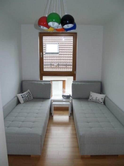 Apartament składa się z przestronnego salonu z aneksem kuchennym, sypialni małżeńskiej oraz sypialni z dwoma pojedynczymi łóżkami. Do dyspozycji gości jest również łazienka z dużym prysznicem oraz taras z zestawem wypoczynkowym, idealnym do relaksu na świeżym powietrzu.