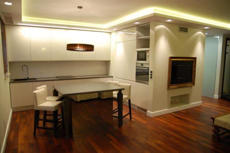 – **Kuchnia**: kuchenka mikrofalowa, zmywarka, piekarnik, płyta grzewcza, podstawowe wyposażenie kuchni