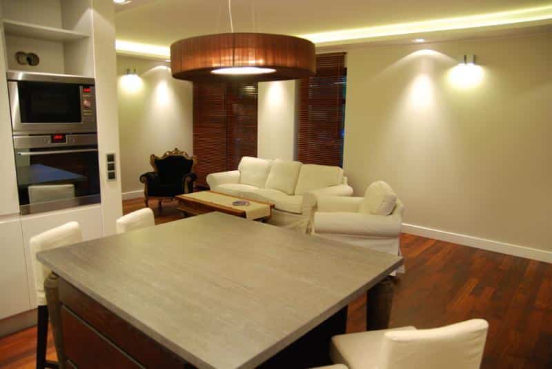 – **Salon**: sofa, fotele, stół, krzesła, telewizor, DVD/CD