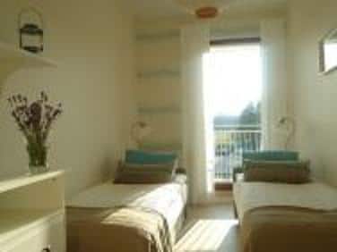 – Sypialnia: dwa tapczany, komoda, stoliki nocne, lampki.