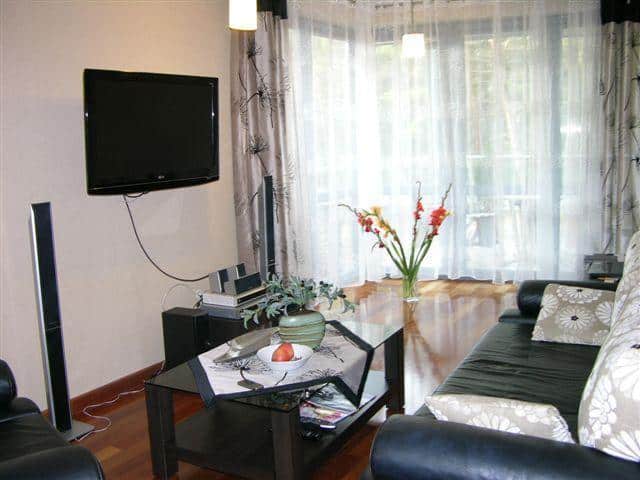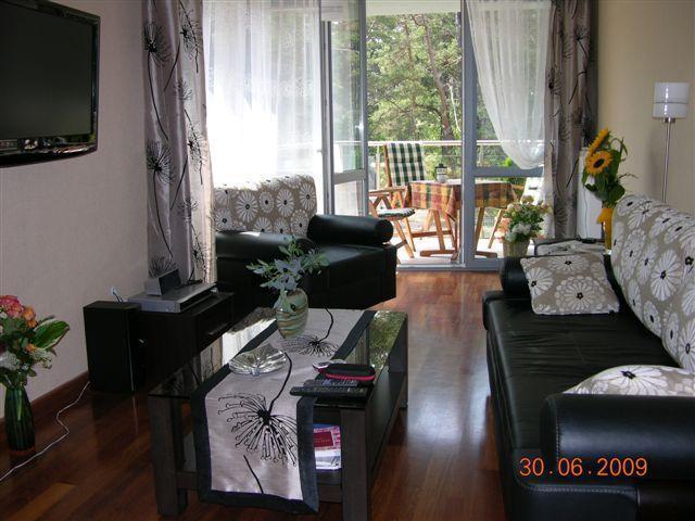 – Salonu: klimatyzacja, komplet wypoczynkowy z rozkładaną kanapą, telewizor LCD 37 cali, kino domowe, telewizja na kartę nTV HD.