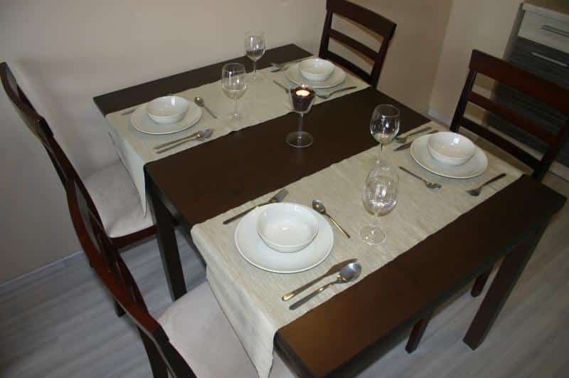 – **Taras**: drewniana podłoga, stolik z krzesłami