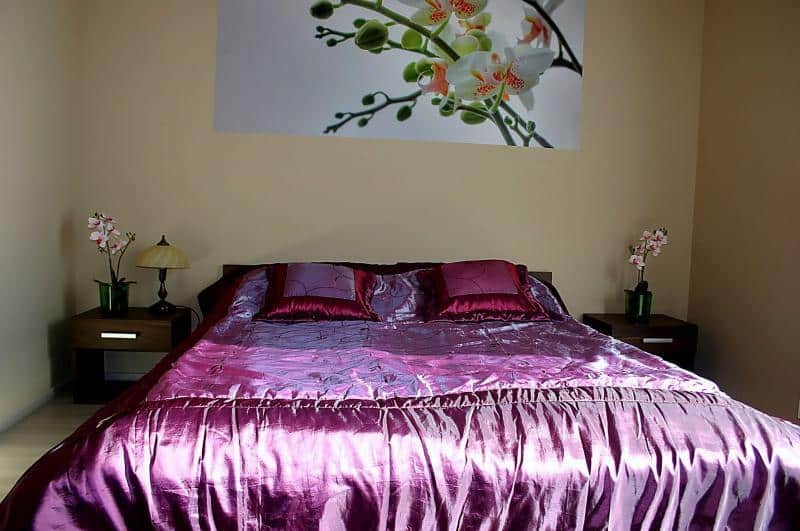 – **Sypialnia**: duże łóżko, szafki nocne, szafa, wyjście na taras