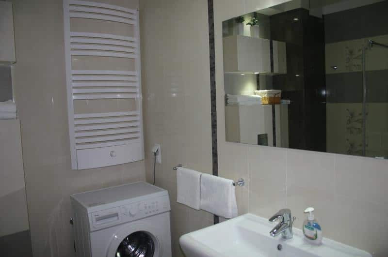 – **Łazienka**: prysznic, pralka, WC, umywalka, suszarka do włosów, ręczniki