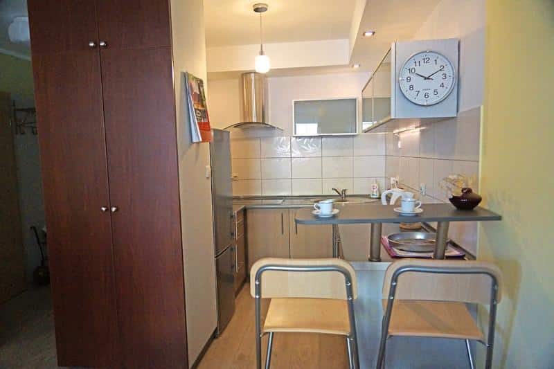 – W pełni wyposażona kuchnia: płyta kuchenna, lodówka z zamrażarką, zmywarka, kuchenka mikrofalowa, toster oraz pełen zestaw naczyń,