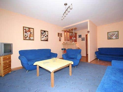 Apartament jest przestronny i nowocześnie urządzony, mogący pomieścić nawet 6 osób dzięki trzem rozkładanym kanapom. To idealne miejsce dla rodzin lub grupy przyjaciół. Na dużym balkonie można odpocząć, podziwiając piękne widoki, a także bezpiecznie przechować wózek czy rower.