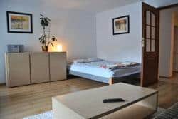 – dużego pokoju (28 m²) z dwoma podwójnymi łóżkami, które mogą służyć jako sofa,