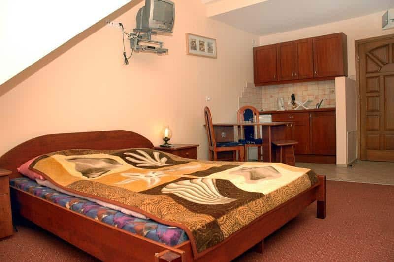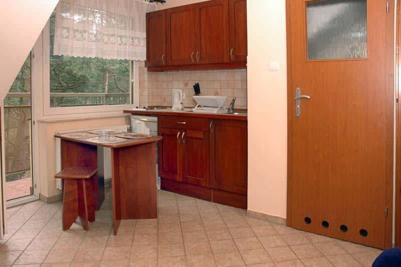 – W pełni wyposażony aneks kuchenny z lodówką,
