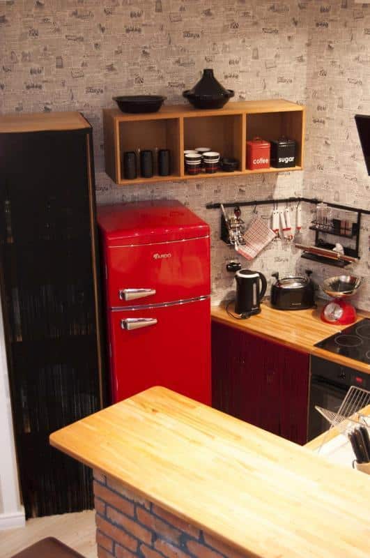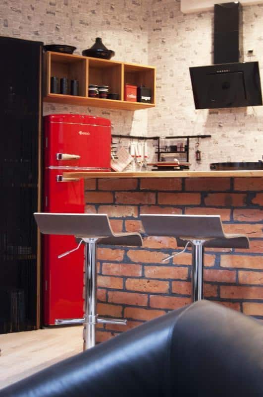 – Aneks kuchenny: futurystyczna lodówka, płyta grzewcza z okapem, piekarnik elektryczny, zmywarka, 2 hokery kuchenne, automat do kawy, toster, czajnik, zestaw garnków i patelni, naczynia kuchenne, pełny zestaw sztućców dla 4 osób, szklanki, serwis do kawy i obiadu, odkurzacz