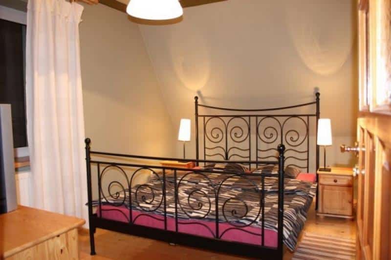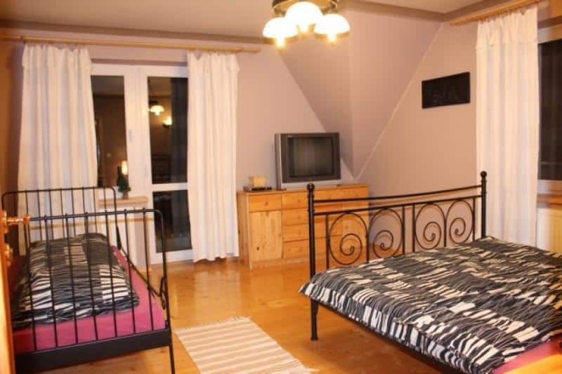 – Mała sypialnia: Z łóżkiem małżeńskim i telewizorem.