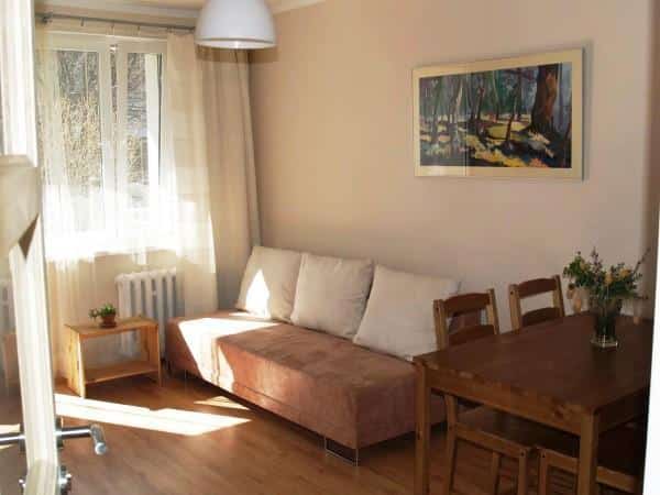 Mieszkanie posiada widoczne z okna miejsce parkingowe, co jest dodatkowym udogodnieniem dla zmotoryzowanych gości. Cena wynajmu wynosi 160 zł za dobę, bez dodatkowych opłat za wodę i prąd, z wyjątkiem okresu wysokiego sezonu.