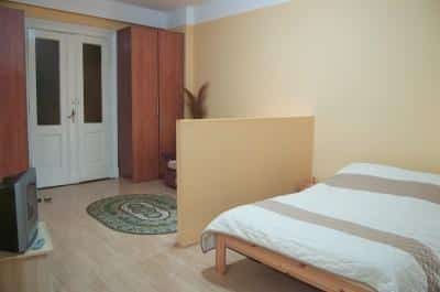 – Duży pokój z aneksem kuchennym i jadalnym oraz podwójną rozkładaną kanapą