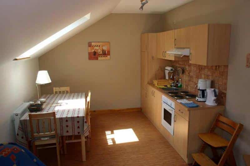 – W pełni wyposażonej kuchni z jadalnią.